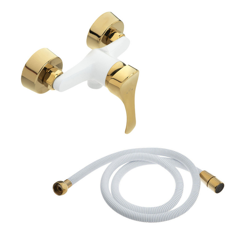 دارای نشان استاندارد ملی ایران قطر کارتریج 40 پوشش رنگ الکترواستاتیک کوره ای پوشش تیتانیوم طلایی لنگی برنجی به همراه شلنگ توالت سفید