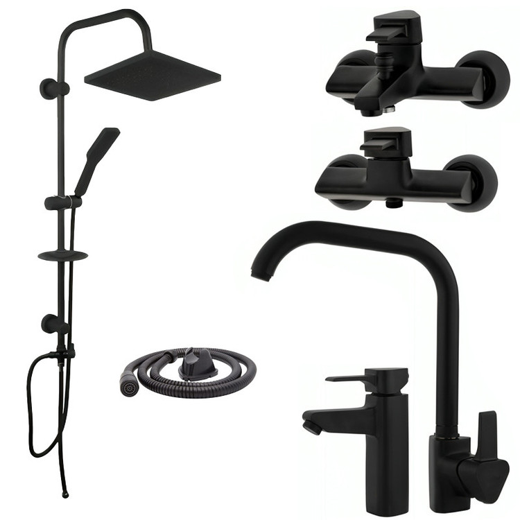 ست شیرالات برمودا عصایی مشکی * دوش حمام * شلنگ توالت