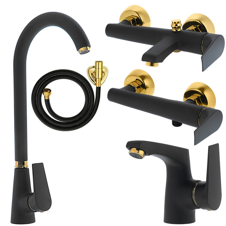 ست شیرالات هیرسا مشکی طلا به همراه شلنگ توالت