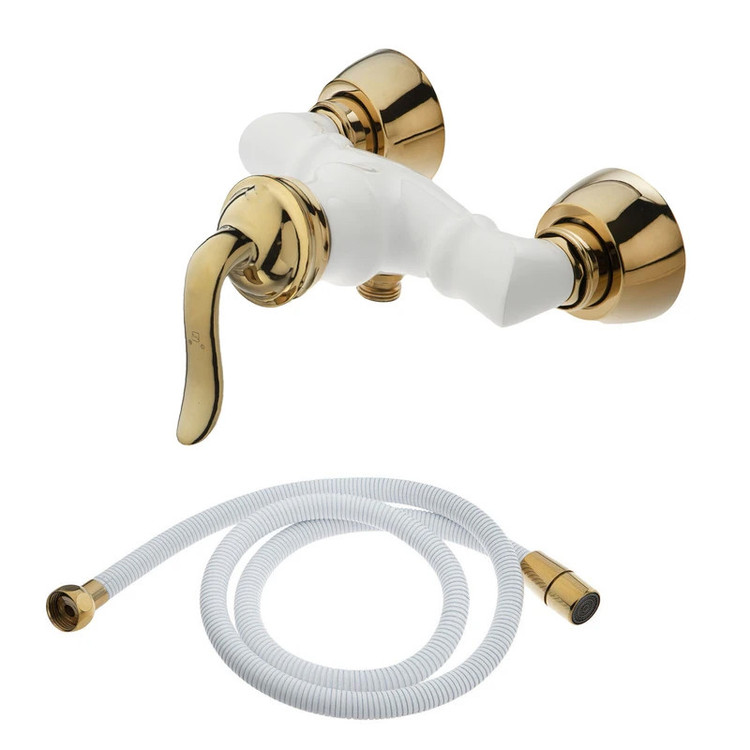 شیر توالت هلن سفید طلا به همراه شلنگ توالت سفید طلایی