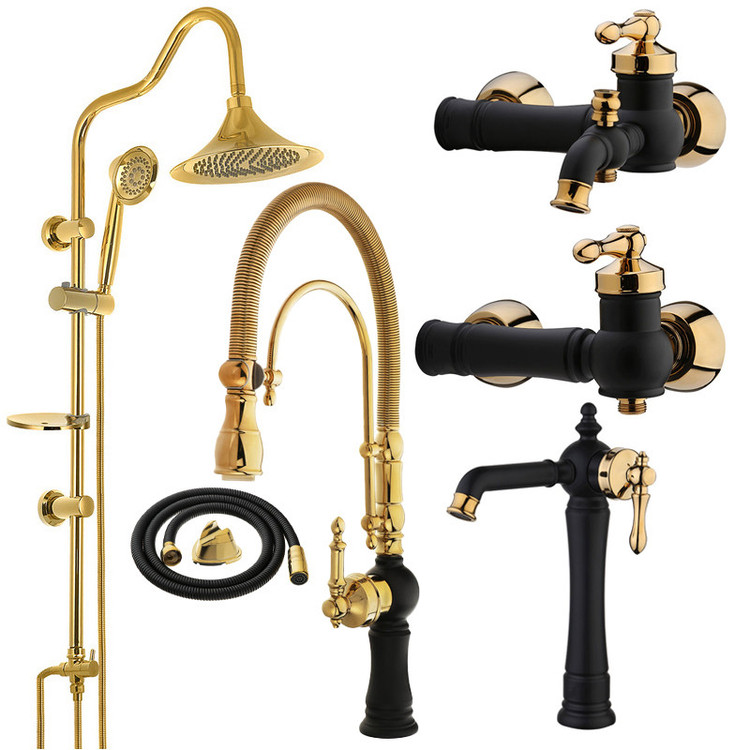 اقلام همراه: ست شیرالات بیزانس مشکی طلایی با ظرفشویی فنری x دوش حمام x شلنگ توالت x محصول مطابق تصویر