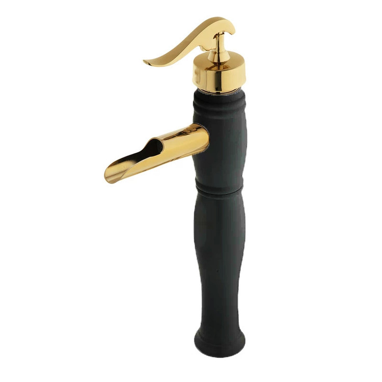 شیر روشویی پایه بلند ونوس مشکی طلایی x آچار زیربندی برنجی x شلنگ اتصال به شیر پیسوال سایز 3.8 x برگ گارانتی