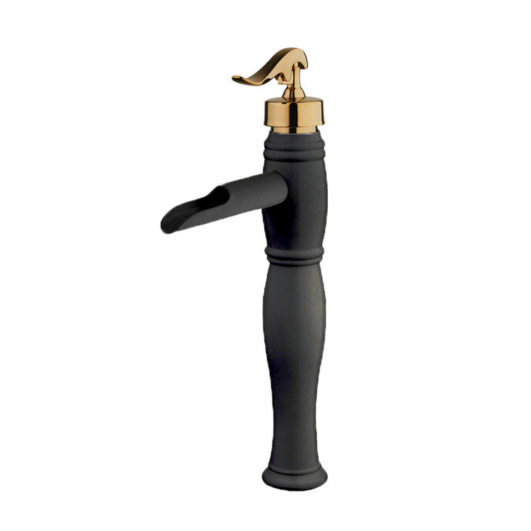 شیر روشویی پایه بلند ونوس مشکی طلایی x شلنگ اتصال به شیر پیسوال سایز 3.8 x برگ گارانتی x آچار زیربندی