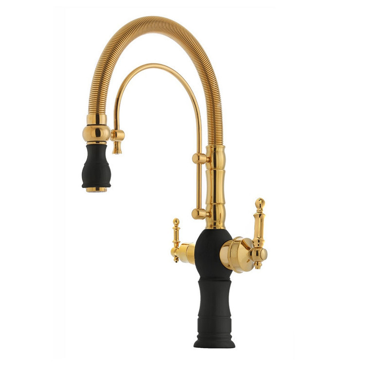 شیر اشپزخانه دو منظوره بیزانس مشکی طلایی x 3عدد شیلنگ اتصال سایز 3.8 x آچار زیربندی