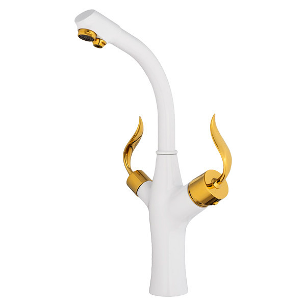 ویژگی‌های شیرآلات : دارای 2 دسته , دارای آبفشان , دارای شیلنگ , رنگ براق , علمک چرخان 360 درجه