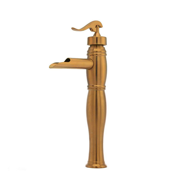 شیر روشویی پایه بلند x دارای نشان استاندارد x پرلاتور مخفی برنجی x جنس آلیاژ برنج x پوشش طلایی تیتانیوم