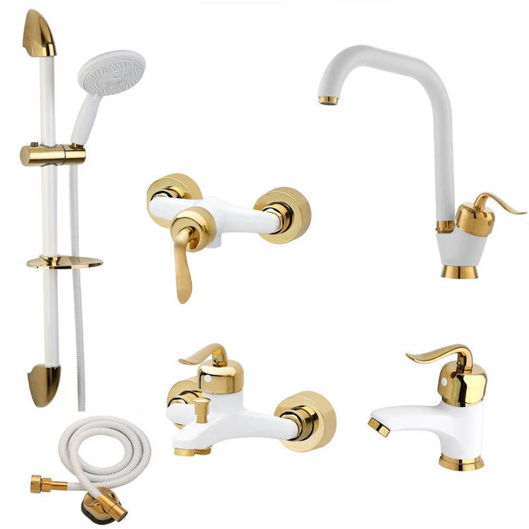 شیر حمام ، روشویی و توالت * ظرفشویی * دوش حمام و شلنگ توالت سفید طلایی
