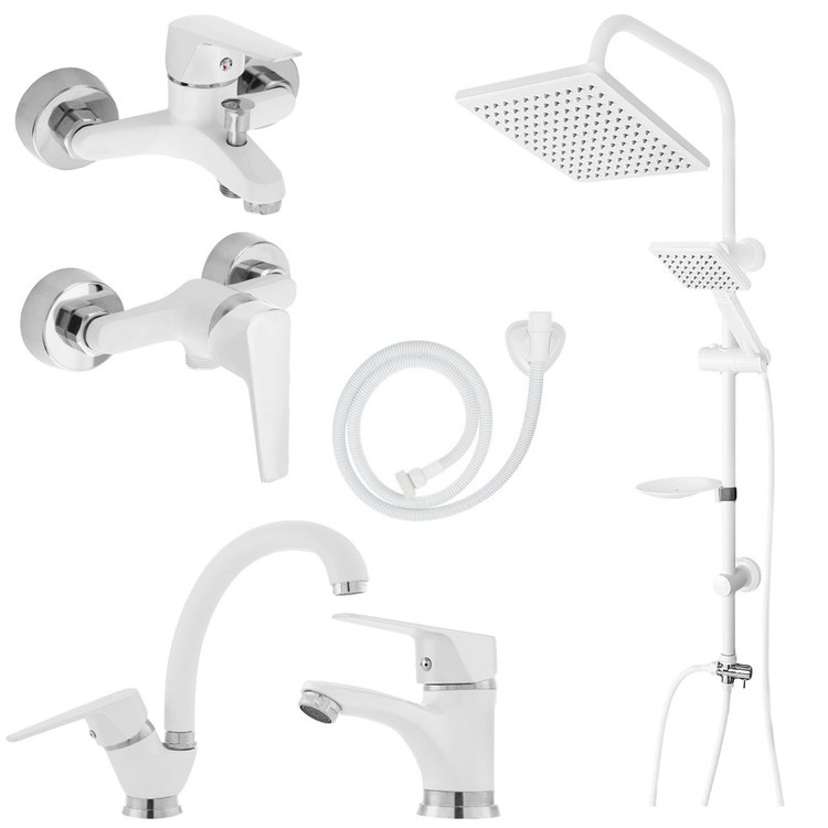 اقلام همراه : ست شیرالات دنا سفید کروم x شلنگ اتصال به شیر پیسوال سایز 3/8 x آچار زیر بندی x شلنگ توالت سفید x دوش حمام سفید x برگ گارانتی x