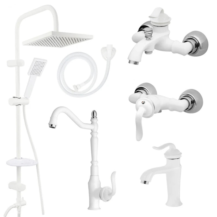 ست شیرالات زحل مدل هلن پایه کوتاه سفید کروم