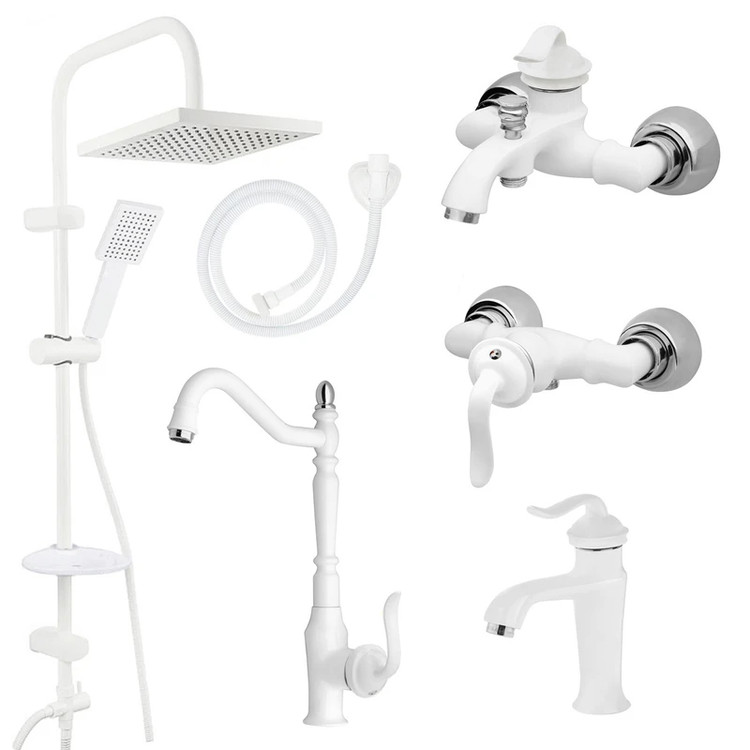 ست شیرالات فراست پویا مدل هلن پایه کوتاه سفید کروم