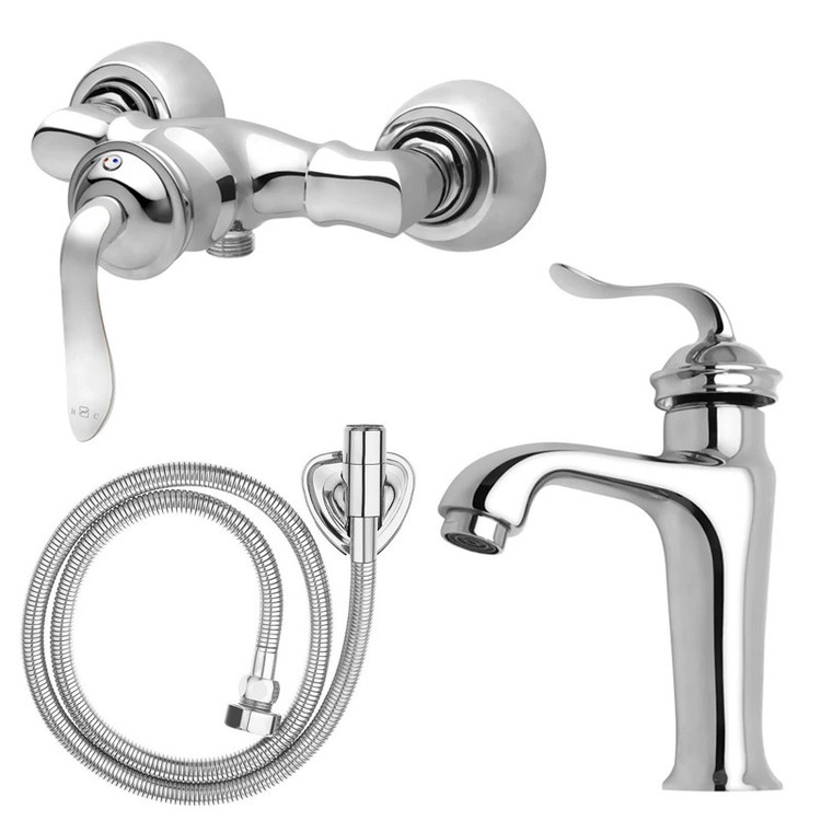 شیر توالت و شیر روشویی هلن به همراه شلنگ توالت کروم