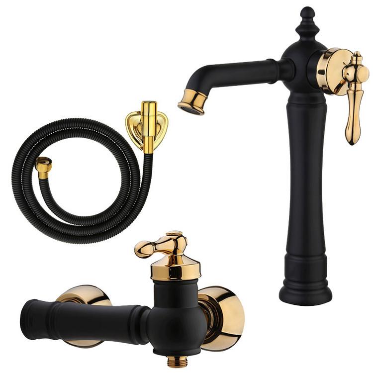اقلام همراه : شیر روشویی پایه بلند * شیر توالت مشکی طلایی به همراه شلنگ *